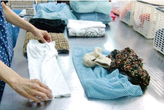 多くのお客様と取引をさせて頂く中で、「多種多様の洗濯物」の処理を行いますが、そこで問題になるのが、お客様からのお預かり洗濯物間での混入です。 小ロット生産の大きな特徴は、顧客単位での洗浄を可能にし効率の良い作業を実現しました。その結果として顧客単位でのロット生産が可能となり、洗浄プラグラムも容易に行えます。 高品質・小ロット生産管理クリーニングは、大手クリーニング工場や大手リネンサプライ工場の不得手とする、小回りの効くクリーニング処理を行い、ご満足を頂ける商品をお届けいたします。 |  |